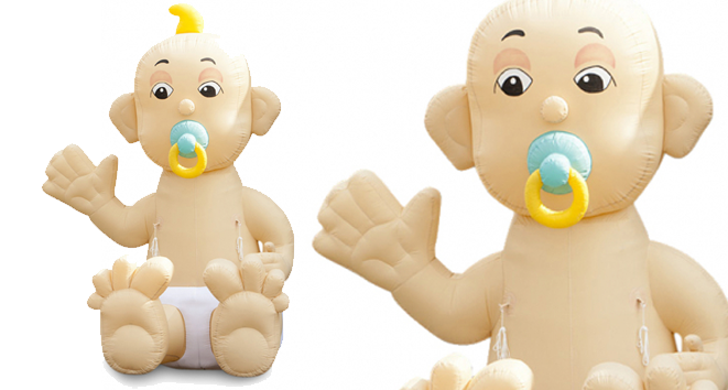 Met deze opblaasbare baby kan de hele buurt zien dat er een jongen of meisje is geboren. Niemand kan er meer omheen: hier is een baby geboren! Deze opblaasbare baby is voor de nieuwe vader(s) en/of moeder(s) zonder twijfel een grappige herinnering aan deze toch al feestelijke tijd. Prijs € 35,00 per 3 dagen (iedere dag extra € 10,00) Hoogte 4 m •10 kg • Stroom 380W |